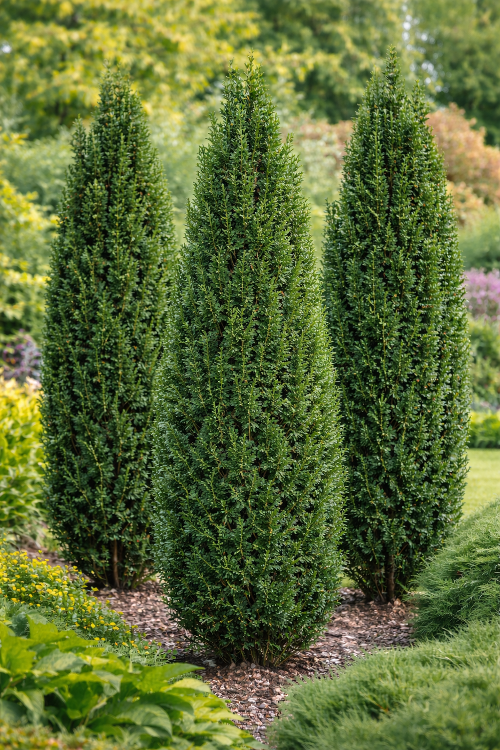 Cis pospolity ‘Fastigiata’ (Taxus baccata) to wąskokolumnowa odmiana o wyraźnie zaznaczonej osi przewodniej i silnie pionowym charakterze wzrostu. Tworzy zwarte, gęste formy o eleganckiej, uporządkowanej sylwetce.