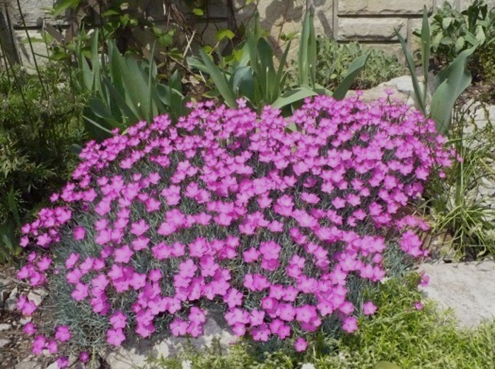 Goździk majowy to niska, zadarniająca bylina o naturalnym, łąkowym charakterze. Tworzy luźne, ale zwarte kobierce złożone z cienkich, zielonych pędów i drobnych, wąskich liści. Największą ozdobą rośliny są liczne, drobne kwiaty w odcieniach różu, karminu lub czerwieni, często z ciemniejszym oczkiem. Jest to gatunek bardzo ceniony za naturalny wygląd, odporność i niewielkie wymagania.