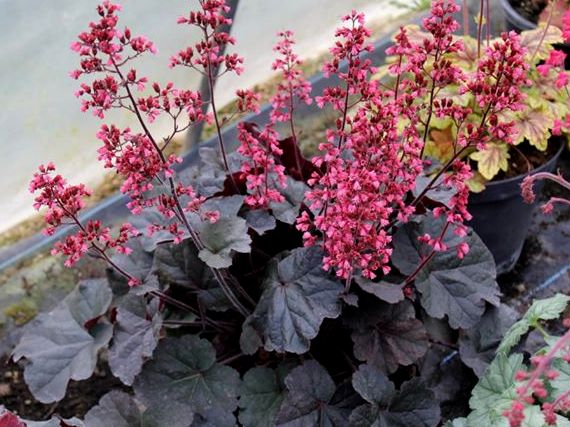 Liście ciemnopurpurowe wpadające w brąz z lekkimi czerwonymi przebarwieniami. Kwiaty bardzo ozdobne, różowe, osadzone na niewysokich kwiatostanach. Kwitnie w okresie lipiec sierpień. Bylina rosnąca kępiasto, dorasta do ok 25 cm wysokości i 35 cm szerokości. Roślina półzimozielona. Odmiana ta przeznaczona jest uprawy w miejscach półcienistych, słonecznych. Ważne jest aby w czasie suszy regularnie podlewać. Jesienią należy ściółkować. Jeżeli zima jest bezśnieżna należy roślinę okryć np. gałązkami świerkowymi. Odmiana odporna na mróz.